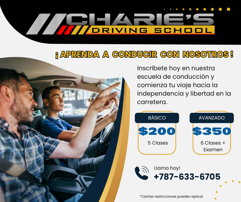 - Las ofertas en promoción de cinco clases por $200 y seis clases más examen por $350 estan sujetas a realizar un depósito por la mitad del costo total del paquete para poder honrar el mismo. En el caso del paquete de cinco clases, estas serán agendadas en un periodo de dos semanas (14 días calendario) para culminar con el curículo de enseñanza en catorce días o menos, en cada clase el estudiante solo pagará $20.00 desde la primera clase hasta la quinta. El paquete de seis clases más examen será agendada en periodo de tres semanas (21 días calendario) para culminar con el curículo de enseñanza en veinti un días o menos, en cada clase el estudiante solo pagará $20.00 desde la primera clase hasta la sexta y el día de su examen pagará el balance restante de $55.00. El examen practico no necesariamente será dentro de estos veinti un días, sino que, estará sujeto a la disponibilidad de turnos de examen brindados por CESCO. ↩︎